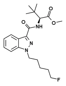 5F-ADB (also known as 5F-MDMB-PINACA) is an indazole-based synthetic cannabinoid from the indazole-3-carboxamide family, which has been used as an active ingredient in synthetic cannabis products and has been sold online as a designer drug.[1][2] 5F-ADB is a potent agonist of the CB1 receptor,[3] though it is unclear whether it is selective for this target. 5F-ADB was first identified in November 2014 from post-mortem samples taken from an individual who had died after using a product containing this substance. Subsequent testing identified 5F-ADB to have been present in a total of ten people who had died from unexplained drug overdoses in Japan between September 2014 and December 2014. 5F-ADB is believed to be extremely potent based on the very low levels detected in tissue samples, and appears to be significantly more toxic than earlier synthetic cannabinoid drugs that had previously been sold.[4]