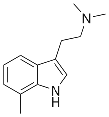 7,N,N-trimethyltryptamine (7-methyl-DMT, 7-TMT), is a tryptamine derivative which acts as an agonist of 5-HT2 receptors.[1][2][3] In animal tests, both 7-TMT and its 5-methoxy derivative 5-MeO-7-TMT produced behavioural responses similar to those of psychedelic drugs such as DMT, but the larger 7-ethyl and 7-bromo derivatives of DMT did not produce psychedelic responses despite having higher 5-HT2 receptor affinity in vitro (cf. DOBU, DOAM).[4] 7-TMT also weakly inhibits reuptake of serotonin but with little effect on dopamine or noradrenaline reuptake.[5]