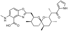 The core biosynthetic enzymes are thought to include 3 proteins for the biosynthesis of the α-ketopyrrole moiety, 5 for modular type I polyketide synthases for the spiroketal ring, 4 for the biosynthesis of 3-hydroxyanthranilic acid, an N-methyltransferase tailoring enzyme, and a type II thioesterase.[6]