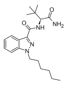 - Gilbert N, Costello A, Ellison JR, Khan U, Knight M, Linnell MJ, et al. (December 2021). "Synthesis, characterisation, detection and quantification of a novel hexyl-substituted synthetic cannabinoid receptor agonist: (S)-N-(1-amino-3,3-dimethyl-1-oxobutan-2-yl)-1-hexyl-1H-indazole-3-carboxamide (ADB-HINACA)" (PDF). Forensic Chemistry. 26: 100354. doi:10.1016/j.forc.2021.100354.