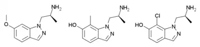 - May JA, Dantanarayana AP, Zinke PW, McLaughlin MA, Sharif NA (January 2006). "1-((S)-2-aminopropyl)-1H-indazol-6-ol: a potent peripherally acting 5-HT2 receptor agonist with ocular hypotensive activity". Journal of Medicinal Chemistry. 49 (1): 318–28. doi:10.1021/jm050663x. PMID 16392816.