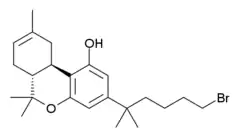 AM-087 (part of the AM cannabinoid series) is an analgesic drug which acts as a cannabinoid agonist.[1] It is a derivative of Δ8-THC, substituted on the 3-position side chain. AM-087 is a potent CB1 agonist with a Ki of 0.43 nM, making it around 100 times more potent than THC itself. This is most likely due to the bulky bromine substituent on the side chain.[2]