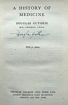 A History of Medicine is a book by Scottish surgeon Douglas Guthrie that was published in 1945 by Thomas Nelson and Sons. It came to wide attention after it was reviewed by the playwright George Bernard Shaw and marked the beginning for Guthrie of a new career in teaching the history of medicine.[1]