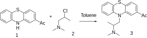 2-Acetylphenothiazine [6631-94-3] (1) 2-Chloropropyldimethylamine [108-14-5] (2)