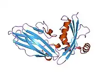 ASIC's have a large, fist-like extracellular region that consumes most of the proteins structure. Within its "fist-like" structure there is a wrist, palm, finger, knuckle, thumb and β-ball domains. The "palm" makes up most of the extracellular domain, formed by seven β-sheets, where as the rest of the secondary structural domains are composed of α-helical segments.[3] Distinguished by its specific amino acid configurations, the extracellular region is fundamental to the induction of activation/inactivation along with pH gating. The specific β-sheet loop area between the "palm" and "thumb" domains has shown involvement in the signal transduction from the extracellular domain to the transmembrane regions, resulting in a conformational change of the ASIC to its open state.[3] However, it remains fairly inconclusive of which particular residues interact with protons to activate the channel. In 2009, studies may have established a relationship between the aromatic residues Tyr72, Pro287, and Trp288 and proton-gating of the ASIC.[3] These residues form an acidic pocket that express electrostatic potentials that are responsible for pH-dependency in channel activation and modulation.[7] This pocket in the extracellular domain acts as a reserve for cations to concentrate to further assist in Na+ influx. Glycosylation is also apparent within the extracellular region, playing an important role in the trafficking the channel to the membrane's surface as well as establishing the ASIC's sensitivity to pH levels. Further experimental evidence has indicated that Ca2+ may also play a pivotal role in modulating proton affinity of ASIC gating both within the pore and on the extracellular domain.[3]