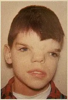 The clefts of the face that are present in FND are vertical clefts. These can differ in severity. When they are less severe, they often present with hypertelorism and normal brain development.[8] Mental retardation is more likely when the hypertelorism is more severe or when extracephalic anomalies occur.[9]