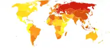 In 2013, approximately 6.9 million people had an ischemic stroke and 3.4 million people had a hemorrhagic stroke.[17] In 2015, there were about 42.4 million people who had previously had a stroke and were still alive.[11] Between 1990 and 2010 the number of strokes which occurred each year decreased by approximately 10% in the developed world and increased by 10% in the developing world.[18] In 2015, stroke was the second most frequent cause of death after coronary artery disease, accounting for 6.3 million deaths (11% of the total).[12] About 3.0 million deaths resulted from ischemic stroke while 3.3 million deaths resulted from hemorrhagic stroke.[12] About half of people who have had a stroke live less than one year.[2] Overall, two thirds of strokes occurred in those over 65 years old.[18]