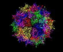 | Adeno-associated virus serotype 2 structure from 1LP3. One fivefold axis shown center. | |