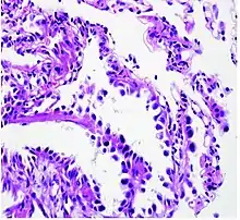- Travis WD, Brambilla E, Noguchi M, Nicholson AG, Geisinger KR, Yatabe Y, et al. (February 2011). "International association for the study of lung cancer/american thoracic society/european respiratory society international multidisciplinary classification of lung adenocarcinoma". Journal of Thoracic Oncology. 6 (2): 244–285. doi:10.1097/JTO.0b013e318206a221. PMC 4513953. PMID 21252716.