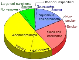 - Table 2 in: Kenfield SA, Wei EK, Stampfer MJ, Rosner BA, Colditz GA (June 2008). "Comparison of aspects of smoking among the four histological types of lung cancer". Tobacco Control. 17 (3): 198–204. doi:10.1136/tc.2007.022582. PMC 3044470. PMID 18390646.