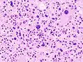 High nuclear grade (enlarged, oval to lobated, with coarsely granular to hyperchromatic chromatin and easily discernible, prominent nucleoli)[12]1