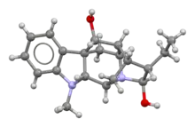 The compound was first isolated by Salimuzzaman Siddiqui in 1931 [1] from the roots of Rauvolfia serpentina. He named it ajmaline, after Hakim Ajmal Khan, one of the most illustrious practitioners of Unani medicine in South Asia.[2] Ajmaline can be found in most species of the genus Rauvolfia as well as Catharanthus roseus.[3] In addition to Southeast Asia, Rauvolfia species have also been found in tropical regions of India, Africa, South America, and some oceanic islands. Other indole alkaloids found in Rauvolfia include reserpine, ajmalicine, serpentine, corynanthine, and yohimbine. While 86 alkaloids have been discovered throughout Rauvolfia vomitoria, ajmaline is mainly isolated from the stem bark and roots of the plant.[3]