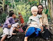 In some Native American and South Pacific cultures, people with albinism have been traditionally revered, because they were considered heavenly beings associated with the sky.[35][36] Among various indigenous tribes in South America, albinos were able to live luxurious lives due to their divine status.[37] This special status was applied mainly to male albinos.[38] It has been theorized that the very high level of albinism among some Native American tribes can be attributed to sexual privileges given to male albinos, which allowed them to reproduce with large numbers of non-albino women in their tribes, leading to the spread of genes that are associated with albinism.[35]