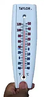 Ethanol-filled thermometer are used in preference to mercury for meteorological measurements of minimum temperatures and can be used down to −70 °C (−94 °F).[2] The physical limitation of the ability of a thermometer to measure low temperature is the freezing point of the liquid used. Ethanol freezes at −114.9 °C (−174.82 °F). If an alcohol thermometer utilizes a combination of ethanol, toluene, and pentane, its lower temperature range may be extended to measure temperatures down to as low as −200 °C (−328 °F).[3] However, the measurement temperature range c. −200 °C to 78 °C, is highly dependent upon the type of alcohol used.