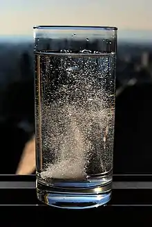 ![]() An Alka-Seltzer tablet dissolving at the bottom of a glass of water. | |