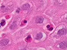 | Micrograph showing eosinophilic esophagitis. H&E stain. | |