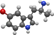 α-Methylserotonin (αMS), also known as α-methyl-5-hydroxytryptamine (α-methyl-5-HT) or 5-hydroxy-α-methyltryptamine (5-HO-αMT), is a tryptamine derivative closely related to the neurotransmitter serotonin (5-HT). It acts as a non-selective serotonin receptor agonist and has been used extensively in scientific research to study the function of the serotonin system.[1]
