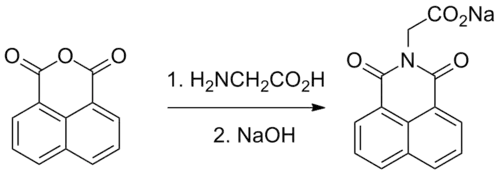 Alrestatin can be synthesized by the reaction of 1,8-naphthoic anhydride with glycine.[5]