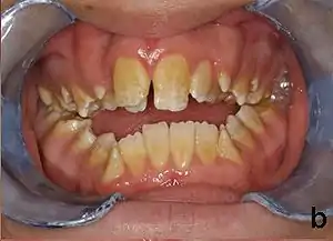 23. Hoppenreijs TJ, Voorsmit RA, Freihofer HP (August 1998). "Open bite deformity in amelogenesis imperfecta. Part 1: An analysis of contributory factors and implications for treatment". Journal of Cranio-Maxillo-Facial Surgery. 26 (4): 260–6. doi:10.1016/s1010-5182(98)80023-1. PMID 9777506.