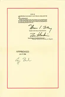 George H. W. Bush, on signing the measure on July 26, 1990,[48] said: