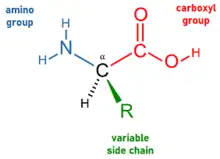 Amino acids are organic compounds that contain both amino and carboxylic acid functional groups.[1] Although over 500 amino acids exist in nature, by far the most important are the α-amino acids, from which proteins are composed.[2] Only 22 α-amino acids appear in the genetic code of all life.[3][4]
