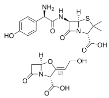 Amoxicillin/clavulanic acid, also known as co-amoxiclav or amox-clav, sold under the brand name Augmentin, among others, is an antibiotic medication used for the treatment of a number of bacterial infections.[4] It is a combination consisting of amoxicillin, a β-lactam antibiotic, and potassium clavulanate, a β-lactamase inhibitor.[4] It is specifically used for otitis media, streptococcal pharyngitis, pneumonia, cellulitis, urinary tract infections, and animal bites.[4] It is taken by mouth or by injection into a vein.[2]