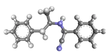 Amfetaminil (also known as amphetaminil, N-cyanobenzylamphetamine,[1] and AN-1; brand name Aponeuron) is a stimulant drug derived from amphetamine, which was developed in the 1970s and used for the treatment of obesity,[2] ADHD,[3][4] and narcolepsy.[5] It has largely been withdrawn from clinical use following problems with abuse.[6] The drug is a prodrug to amphetamine.[7][8]