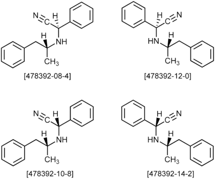 - (S)-2-[(R)-1-Phenylpropan-2-ylamino]-2-phenylacetonitrile (CAS number 478392-14-2)