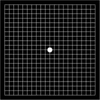 In the test, the person looks with each eye separately at the small dot in the center of the grid. Patients with macular disease may see wavy lines or some lines may be missing.
