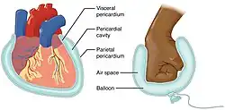 A serous membrane (also referred to as a serosa) is a thin membrane that covers the walls of organs in the thoracic and abdominal cavities. The serous membranes have two layers; parietal and visceral, surrounding a fluid filled space.[1] The visceral layer of the membrane covers the organ (the viscera), and the parietal layer lines the walls of the body cavity (pariet- refers to a cavity wall). Between the parietal and visceral layers is a very thin, fluid-filled serous space, or cavity.[1] For example, the pericardium is the serous cavity which surrounds the heart.[1]