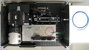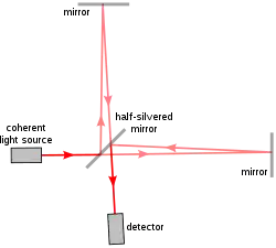 The first implementation of a/LCI[6] used a Michelson interferometer, the same model used in the famous Michelson–Morley experiment. The Michelson interferometer splits one beam of light into two paths, one reference path and one sampling path, and recombines them again to produce a waveform resulting from interference. The difference between the reference beam and the sampling beam thus reveal the properties of the sample in the way it scatters light.