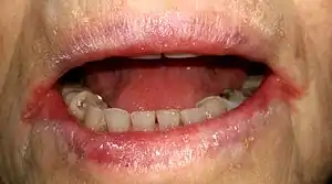 | Other names | Rhagades,[1] perlèche,[2] cheilosis,[2] angular cheilosis,[2] commissural cheilitis,[2] angular stomatitis[2] |