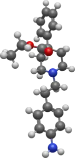 Anileridine (trade name: Leritine) is a synthetic analgesic drug[1] and is a member of the piperidine class of analgesic agents[2] developed by Merck & Co. in the 1950s.[3] It differs from pethidine (meperidine) in that the N-methyl group of meperidine is replaced by an N-aminophenethyl group, which increases its analgesic activity.