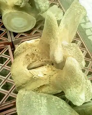 | Osseous ankylosis has fused two vertebrae of this North Atlantic right whale specimen | |