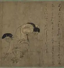 Japan: A man with an anal fistula. From the Yamai no Soshi, late 12th century.
