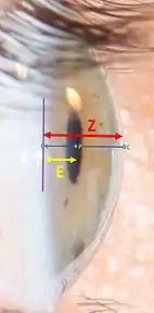 1. The pixel distance between the limbus (the junction between clear cornea and white sclera) and the front of the cornea. This distance is referred to as Z.