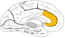 ![]() Medial surface of left cerebral hemisphere, with anterior cingulate highlighted | |
