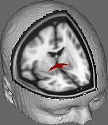 ![]() Coronal cross-section of brain showing the anterior commissure. (left, third from bottom.) | |