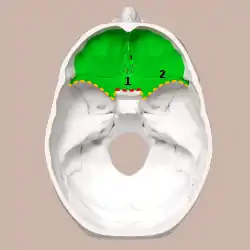 Superior view of the skull base. Anterior cranial fossa shown in green.