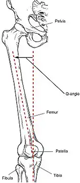 Additionally, female pelvises widen during puberty through the influence of sex hormones. This wider pelvis requires the femur to angle toward the knees. This angle towards the knee is referred to as the Q angle. The average Q angle for men is 14 degrees and the average for women is 17 degrees. Steps can be taken to reduce this Q angle, such as using orthotics.[22] The relatively wider female hip and widened Q angle may lead to an increased likelihood of ACL tears in women.[23]