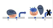 Sigma factor is an important protein which starts the transcription by binding with RNAP, anti-sigma factor is a protein which inhibits the activities of sigma factor affect by several mechanism such as add up anti-sigma factor between sigma or twist the anti-sigma factor around sigma.[2]