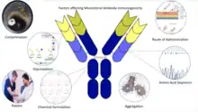 Therapeutic monoclonal antibodies (mAbs) are used for several diseases, including cancer and Rheumatoid arthritis.[12] Consequently, the high immunogenicity limited efficacy and was associated with severe infusion reactions. Although the exact mechanism is unclear, it is suspected that the mAbs are inducing infusion reactions by eliciting antibody antigen interactions, such as increased formation of immunoglobulin E (IgE) antibodies, which may bind onto mast cells and subsequent degranulation, causing allergy-like symptoms as well as the release of additional cytokines.[13]