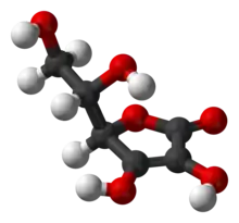 Ascorbic acid or vitamin C is a monosaccharide oxidation-reduction (redox) catalyst found in both animals and plants.[75] As one of the enzymes needed to make ascorbic acid has been lost by mutation during primate evolution, humans must obtain it from their diet; it is therefore a dietary vitamin.[75][76] Most other animals are able to produce this compound in their bodies and do not require it in their diets.[77] Ascorbic acid is required for the conversion of the procollagen to collagen by oxidizing proline residues to hydroxyproline.[75] In other cells, it is maintained in its reduced form by reaction with glutathione, which can be catalysed by protein disulfide isomerase and glutaredoxins.[78][79] Ascorbic acid is a redox catalyst which can reduce, and thereby neutralize, reactive oxygen species such as hydrogen peroxide.[75][80] In addition to its direct antioxidant effects, ascorbic acid is also a substrate for the redox enzyme ascorbate peroxidase, a function that is used in stress resistance in plants.[81] Ascorbic acid is present at high levels in all parts of plants and can reach concentrations of 20 millimolar in chloroplasts.[82]