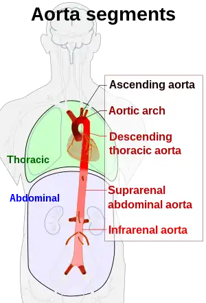 In anatomical sources, the aorta is usually divided into sections.[2][3][4][5]