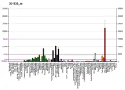 Studies on several cell types have shown that ApoD expression can be induced by several stressing situations such as growth arrest, senescence, oxidative and inflammatory stresses.[23][24] ApoD expression is also increased in several neuropathologies. ApoD expression is modulated in several pathologies such as HDL familial deficiency, Tangier disease,[36][37] LCAT familial deficit[38] and type 2 diabetes.[39] It is overexpressed in numerous cancers,[40] including breast,[41][42] ovary, prostate,[43] skin[44][45] and central nervous system (CNS) cancer. In many cases, its expression is correlated with highly differentiated, non-invasive and non-metastatic state.