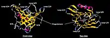 The resolved tertiary structure shows that ApoD is composed of 8 anti-parallel β-strands forming a hydrophobic cavity capable of receiving different ligands.[11][12] ApoD also contains 5 cysteine residues, 4 of which are involved in intra-molecular disulfide bonds.