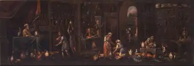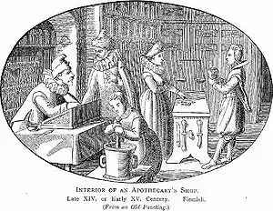 Apothecaries' investigation of herbal and chemical ingredients was a precursor to the modern sciences of chemistry and pharmacology.[1]