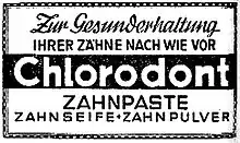 - Kalodont: discontinued in 1981,[23] it was originally produced by F. A. Sarg’s Sohn & Co. from Vienna and first sold in Austria-Hungary in 1887. It later became widely distributed, in 34 other countries, and obtained a near-monopoly status that caused the word "kalodont" to become synonymous with the word for "tooth paste" in South Slavic languages. It was also available in Russia in 1927.[24]