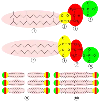 | Cell membrane | Ether-linked lipids | Ester-linked lipids | Ester-linked lipids |