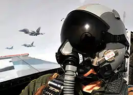 For modern military aircraft such as the United States' F‑22 and F‑35, both of which have operational altitudes of 18,000 m (59,000 ft) or more, the pilot wears a "counter-pressure garment", which is a g‑suit with high-altitude capabilities. In the event the cockpit loses pressure, the oxygen system switches to a positive-pressure mode to deliver above-ambient-pressure oxygen to a specially sealing mask as well as to proportionally inflate the counter-pressure garment. The garment counters the outward expansion of the pilot's chest to prevent pulmonary barotrauma until the pilot can descend to a safe altitude.[12]